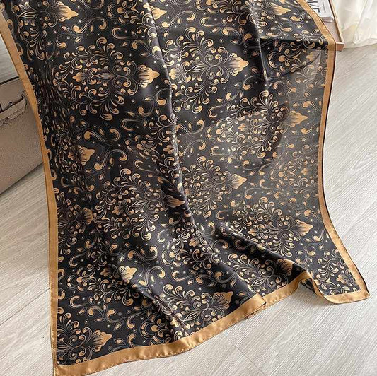 Luxury Satin Stole with Classic Print – Black & Multicolor Border