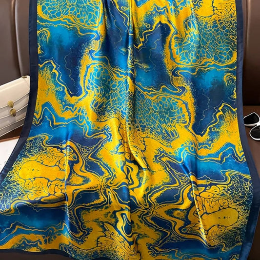 Luxury Abstract Print Stole – Blue & Golden Hues