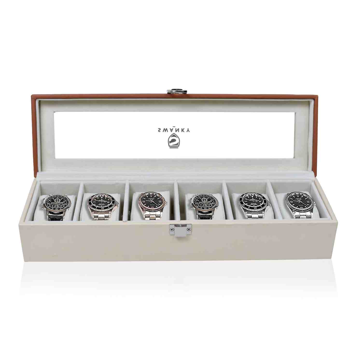 CLEAR GLASS LID - Transparent window helps you to display your watches whatever in a shop or on your dressing table. Sturdy material protects your watches and jewelries.